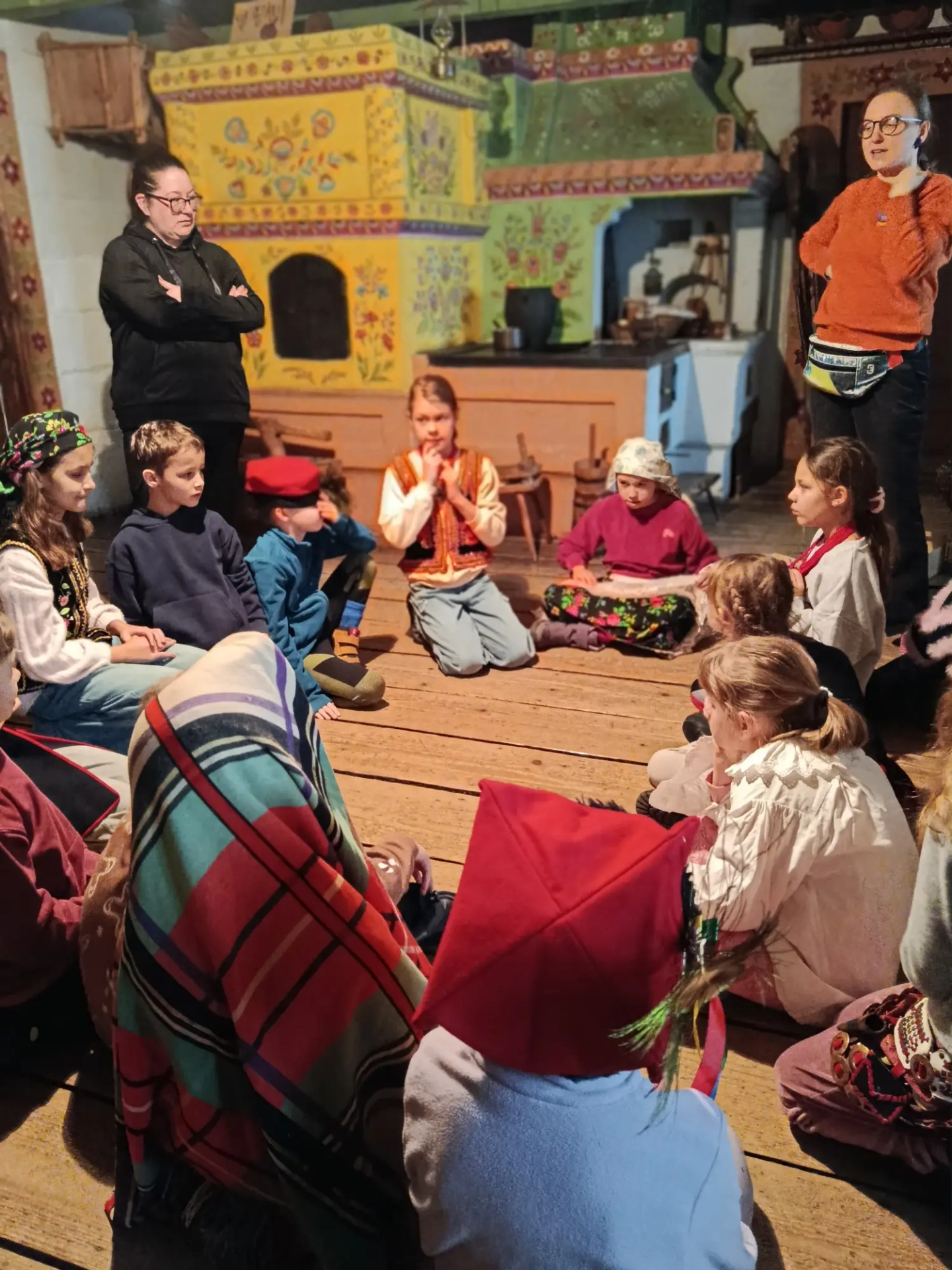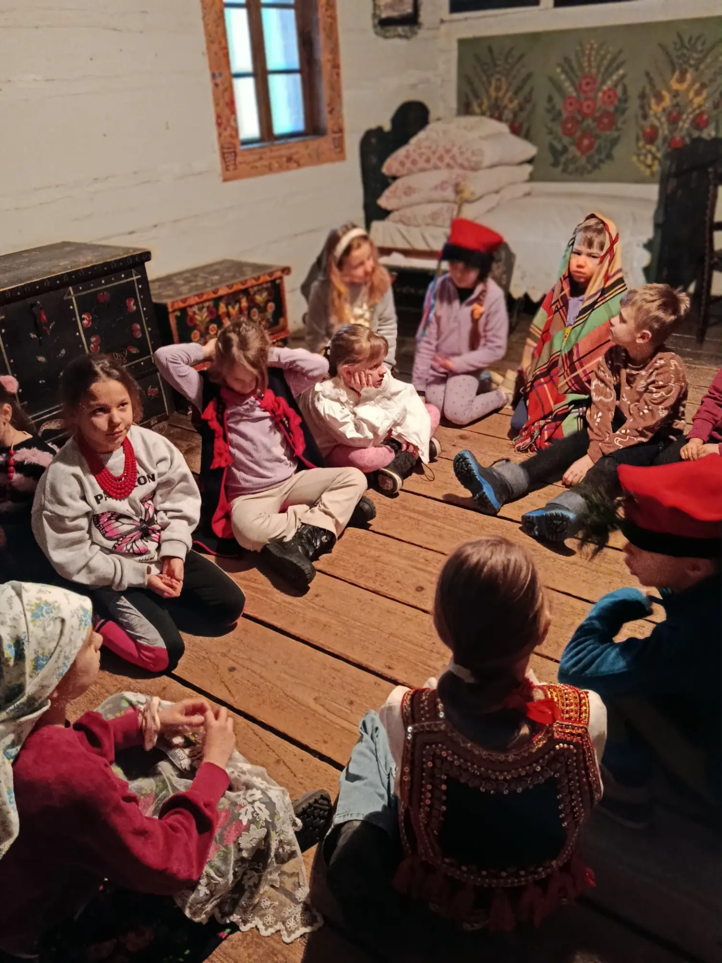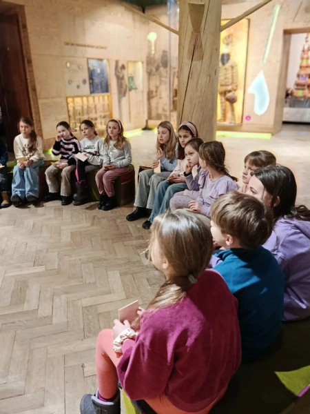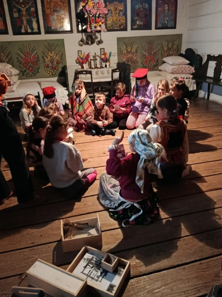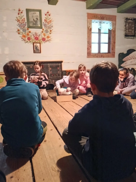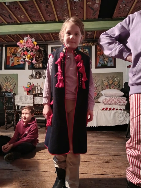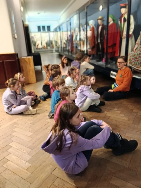 Czwarty dzień półkolonii skupiał się na kulturze i tradycjach. Po wyjeździe do Krakowa dzieci odwiedziły Muzeum Etnograficzne, gdzie uczestniczyły w warsztatach „Wyzwanie – Ubranie”. Podczas zajęć uczestnicy poznali tradycyjne stroje z różnych regionów oraz dowiedzieli się, jak ubiór odzwierciedla kulturę i historię danego miejsca. Warsztaty miały charakter praktyczny, dzięki czemu dzieci mogły aktywnie uczestniczyć w zajęciach.