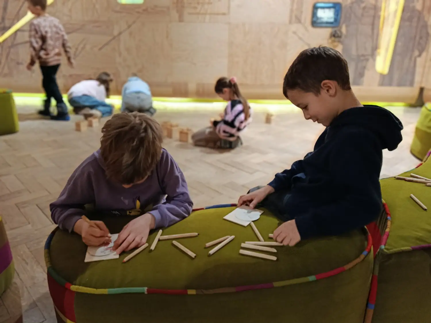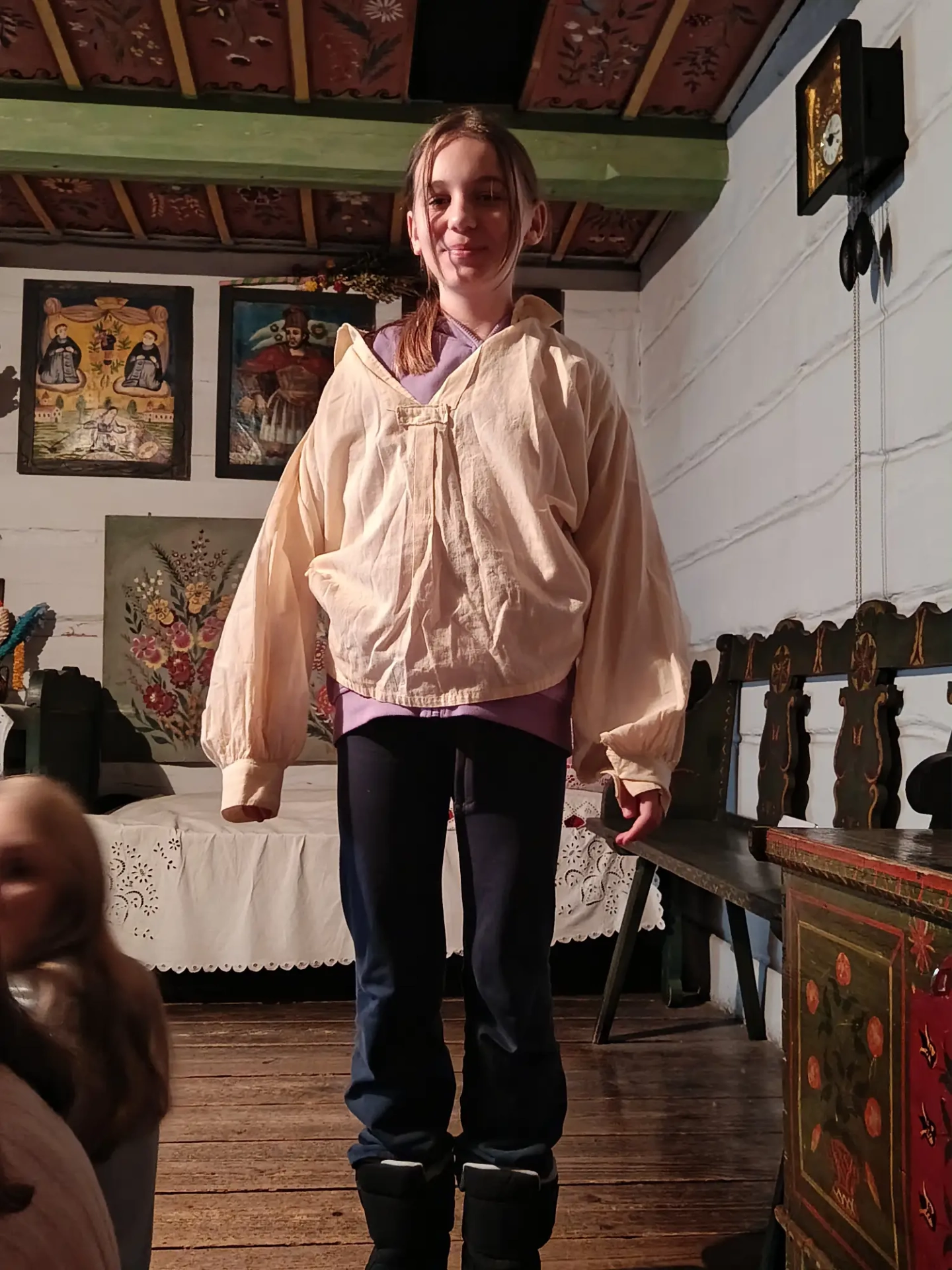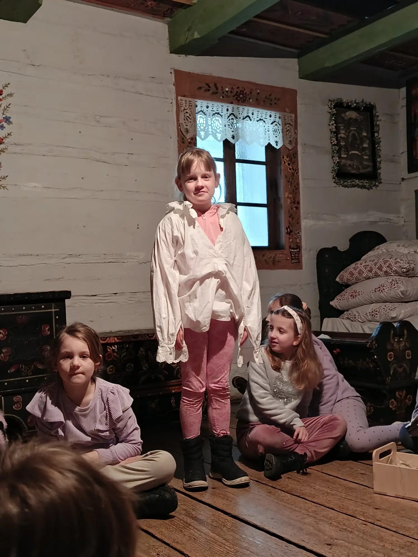 Czwarty dzień półkolonii skupiał się na kulturze i tradycjach. Po wyjeździe do Krakowa dzieci odwiedziły Muzeum Etnograficzne, gdzie uczestniczyły w warsztatach „Wyzwanie – Ubranie”. Podczas zajęć uczestnicy poznali tradycyjne stroje z różnych regionów oraz dowiedzieli się, jak ubiór odzwierciedla kulturę i historię danego miejsca. Warsztaty miały charakter praktyczny, dzięki czemu dzieci mogły aktywnie uczestniczyć w zajęciach.