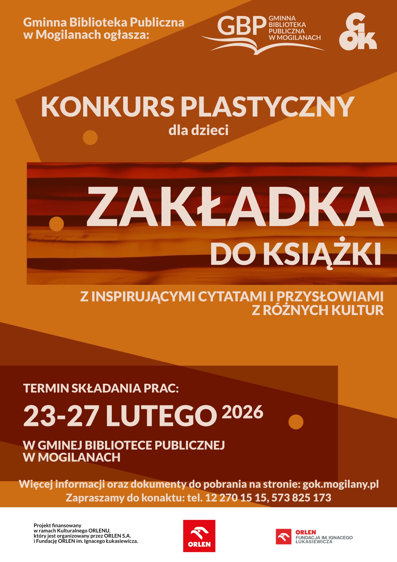 Wszystkich chętnych zapraszamy z zakładkami oraz kartami zgłoszeniowymi do Gminnej Biblioteki Publicznej przy ul. Rynek 2 w Mogilanach w dniach 23-27 lutego 2026r.