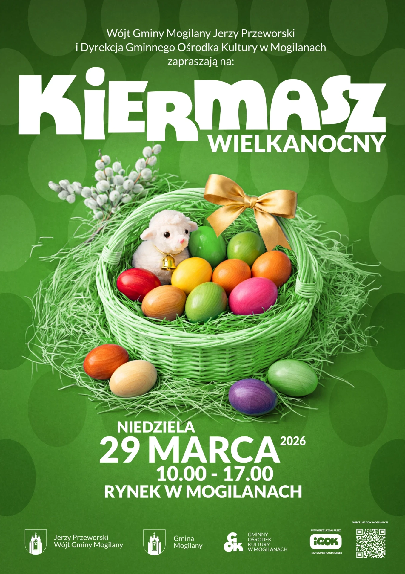 Wójt Gminy Mogilany Jerzy Przeworski i Dyrekcja Gminnego Ośrodka Kultury w Mogilanach serdecznie zapraszają na Kiermasz Wielkanocny, który odbędzie się 29 marca na rynku w Mogilanach w godzinach 10:00–17:00. Będzie to doskonała okazja, aby poczuć świąteczną atmosferę oraz zaopatrzyć się w wyjątkowe, lokalne produkty przygotowane przez wystawców z regionu.